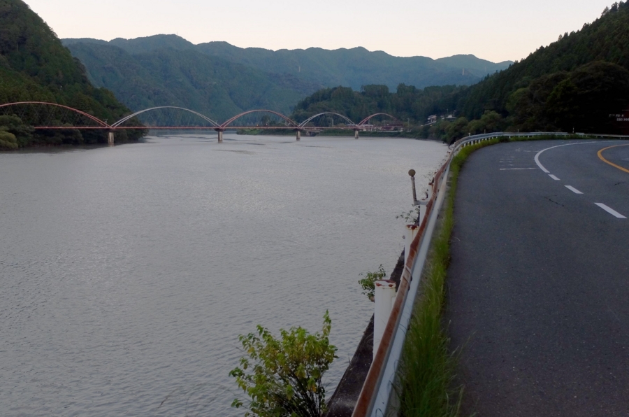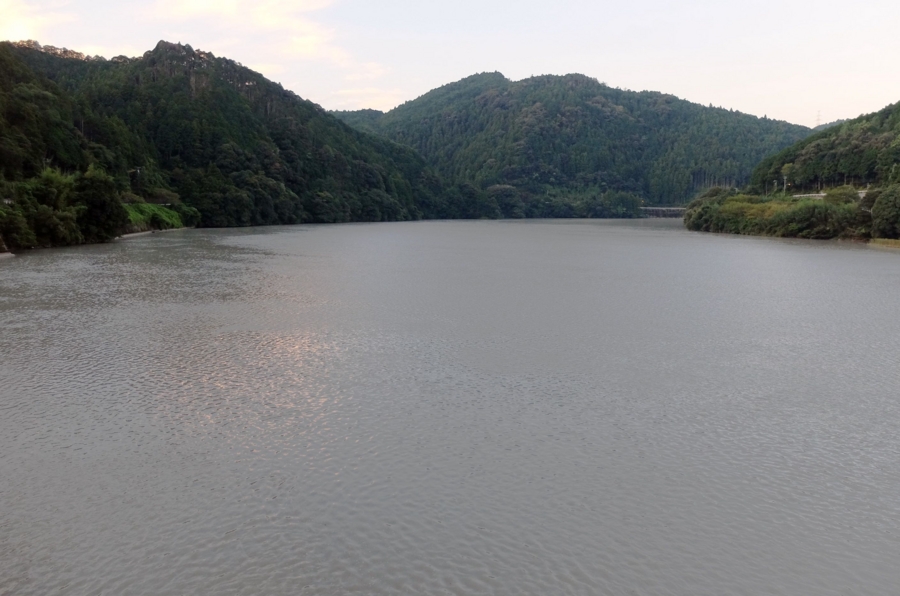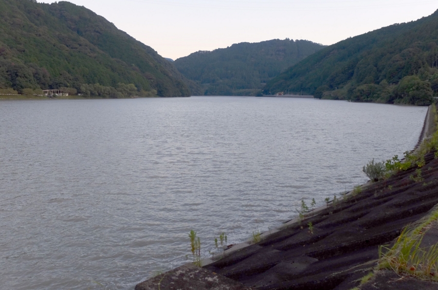 南北に長いダム湖の左岸には国道が沿っており、中ほどに道の駅もある。