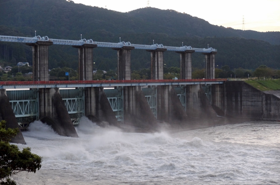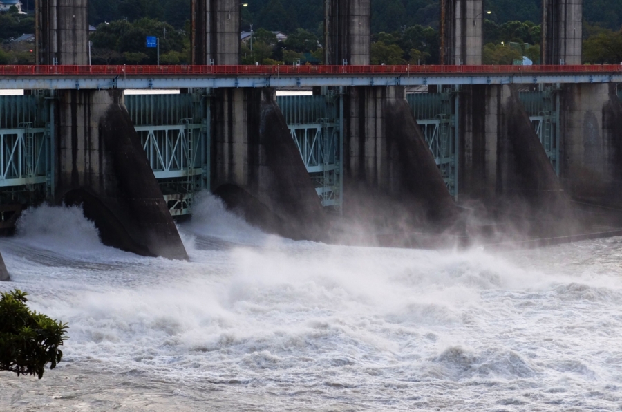 世界最大級のローラーゲートからの放流は圧巻。
