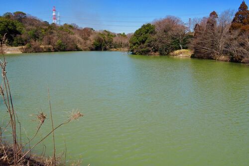 緑に囲まれ知多半島の豊かさを感じさせてくれる藤仙坊池。池岸のところどころに入釣痕跡の濃い陸釣りポイントが見られる。しかしこの池の周辺でも宅地化が進み、地図で見ると遠からぬうちに住宅地に包囲されそうな感じである。いちばん近い住宅地は木のすぐ…