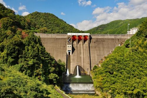 川上ダムによって堰かれた貯水地。下流に周南の工業地帯が控えるだけあって、工業用水の確保が主目的の県営ダムである。 堰体わきに小さなダム公園をのせた人工島のような半島があるのがユニーク。このダム公園には堰体の天端を経てクルマでアプローチできる…