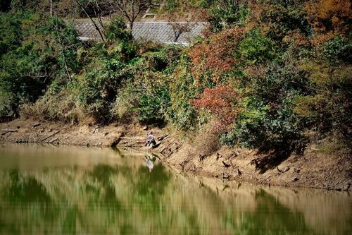 宮奥湖。宮奥ダム水辺公園。湖岸に貼り付くへらぶな釣り師が見える。 なぜかピラミッドのある、ゆるい空気が魅力のダム湖。 重力式コンクリートの奈良県営の多目的ダムが宇陀川を堰く宮奥湖。あまり湖名で呼ばれることはないようだが、のんびりとした雰囲気…