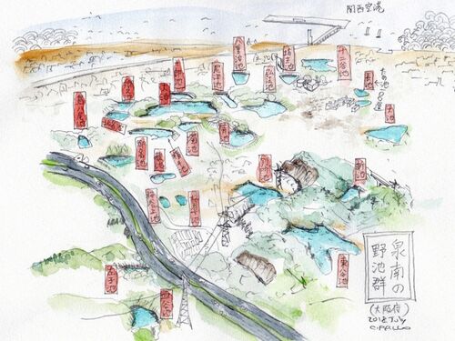 大阪屈指の溜め池密集エリア。 大阪南部は古名で和泉地方、あるいは泉州とも呼ばれる。全国に泉州の名がとどろくのは、特産品の泉州水茄子。酒のつまみに最高である。 ここを北と南に分けて泉北、泉南ともいう。大阪平野が海と山に狭められて尽きる三角形の…