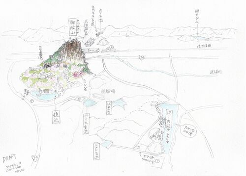 【 あじいけ。河内堰堤、河内桜公園】池の中に並ぶケルンのような石積みは、かつて水質浄化用の噴水として使われたもの。1927年に竣工した河内貯水池の堰体直下に造られた水質浄化用の池。前年の1926年に完成しているので、河内貯水池の利水プロジェクトの一…