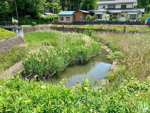 小さな丘陵地に穿たれたヘソのようなくぼみに池。そんなおもしろい地形は歩いていても実感できる。 下った先の池には横浜共通タイプの調整池看板。しかし池名に萌える。 寒池! ただの調整池でないことは明らかだ。 このあたり「寒谷戸」(さぶやと)という…