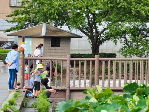 多摩川の近くにある公園池。修景池とも。 駐車場無料。 駐車場 案内板 マークした場所は駐車場。