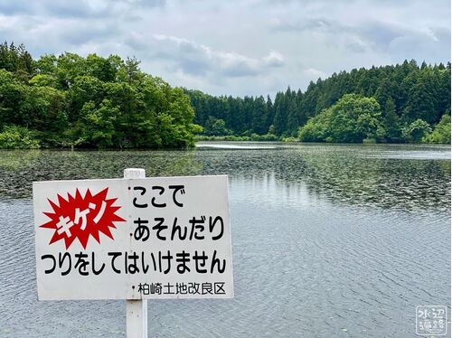 北700mのところに五日市大池があるが、こちらの大池も対抗して井岡大池となれば地名が生かされた個性が出てよかったのに。 護岸は遮水性を確保するためのラバーフェイシングとネットの補強。 広々とした水面にはヒシモがちらほら。 釣り禁止。 ひとつの時代…