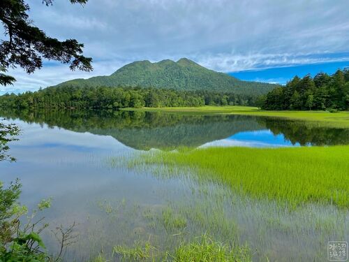 奥にそびえるのは百名山・燧ヶ岳。百名山・燧ヶ岳(燧岳・標高2,346m)の北麓に位置する。燧ヶ岳山腹には大小の「田代」(たしろ)と呼ばれる池沼群が多数あり、重兵衛池も湿原を伴った形態から田代のひとつかと思ったが、湛水面の周囲長は500m級で他の田代…