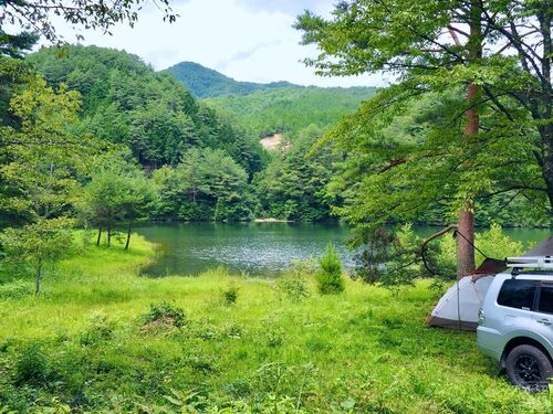 【いわくらだむ。岩倉貯水池】発電専用の人造湖で釣りだけでなく、ボートや遊泳までできるのはめずらしいこじんまりとした雰囲気のよい人造湖。 中部電力が管理する重力式コンクリートダムが堰く貯水池だが、堆砂が進んでビーチ状になった湖岸を活用し、木陰…