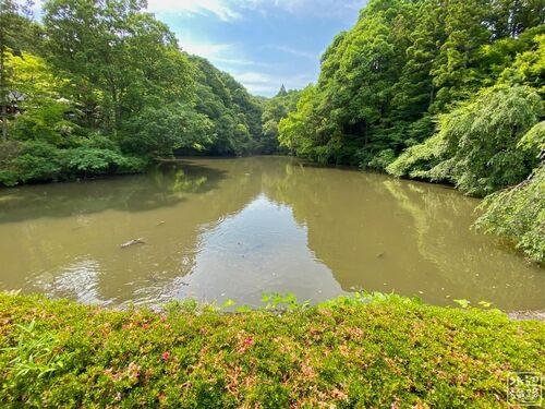 もとは水戸徳川家重臣の屋敷内を流れる不老沢という川だったが、明治時代になって徳川家が没落すると、村の水田を潤す溜め池として築堤されたようだ。 案内板に記された英語表記が「ever-young pond」・・発想の転換? なるほど。 池岸の遊歩道の一部はウッ…