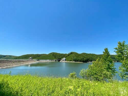 ロックフィルダムが堰く農業用貯水池。 ダム下に駐車場、トイレあり。 アプローチ路は舗装路でダムから先はダート。 ダムサイト側の駐車場はオフローダーの拠点になっていた。 マークした場所に駐車場。