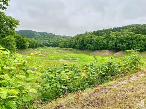 左の方に水面らしきものが見える栗山ダムの堤体下にある謎の池。 たまたまカーナビに池名が記されていたのでアプローチしようとしてみたが、藪と森に囲まれており水面を拝めず。 次に栗山ダムの天端に上がって上から見おろそうとしてみたが、わずかに樹木の…