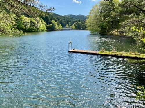砂防ダムが堰く池。 夏場は予約でインストラクター付きのカヌー体験もできる。ワカサギが生息しているらしい。 アプローチ路は1.5車線。あんころ餅屋あり。