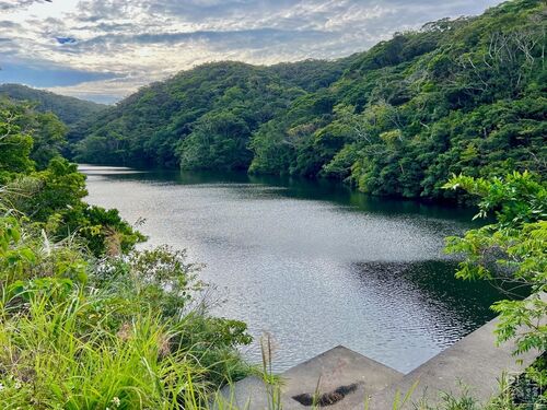 地図にもなく、資料からも名が消された謎ダム? 奄美大島の北部飛び地にあたる笠利地区の山をはさんだ西側の貯水池。 2022年11月現在はGoogleマップには池として描かれていないが、砂防ダムタイプのコンクリート堰堤が堰く周囲長800mクラスの立派な貯水池だ…
