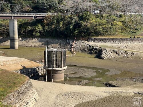 福岡県ため池オフィシャルデータベースに堤高16.9mで登録されているハイダムスペックの溜め池。 堤体天端に管理道が通るが、堤体は荒れており水位が低い。管理に何らかの問題が生じていると思われる。