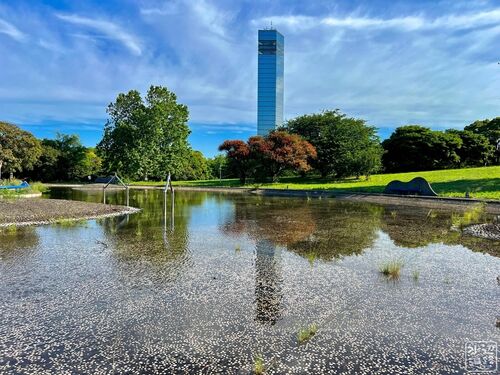 千葉ポートタワーのある千葉ポートパークの公園池。 水面に映る「逆さポートタワー」を試みるも、池が浅すぎていまいち。 公園駐車場は有料。 海岸では釣り人の姿も。 駐車場 マークした場所は駐車場。