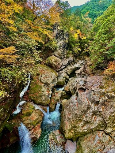 やかまのおうけつぐん。大きな高低差と立体感が迫力の八釜甌穴。中央右寄りに見える遊歩道の階段から甌穴の大きさがうかがい知れる 国の天然記念物。龍神伝説もあるド迫力の甌穴群 面河第三ダムの上流側、面河川支流の高野本川の柳谷ダム下流側の岩渓の、わ…