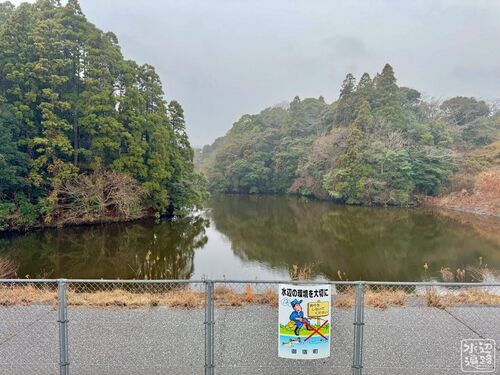 ニュータウン直下にあるハイダムスペックの溜め池 御宿台は海岸段丘の上にある瀟洒なニュータウンの谷部に穿たれた江戸時代以前に築造されたとされるハイダムスペックの溜め池。 堤高は16.3m。釣り禁止。堰体天端は道路になっている。 池さんぽマップ 2024年…