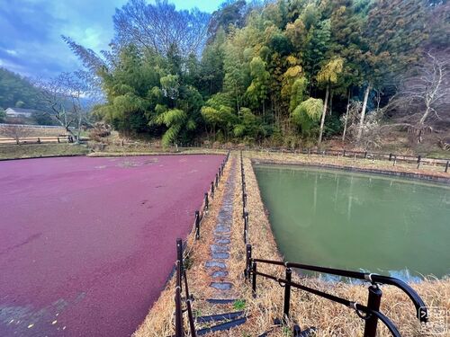 赤い池と緑の池が堤一本を隔てピシッと分かれてる。こんな池は初めてだ。 歴史ある湯治場の名残りが名前に。名水百選。 名水100選にも選ばれた湧水による池があり、軽く公園化されている。 室町時代に鶴岡八幡宮直轄の湯治場があり、「湯谷」(ゆや)と呼ば…