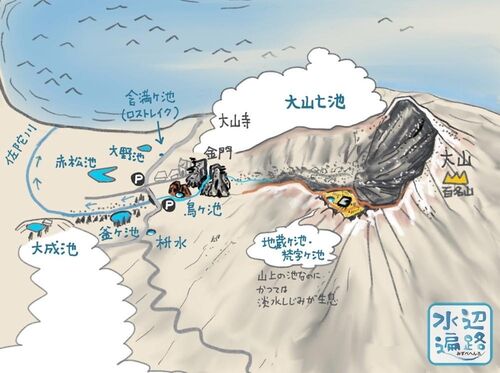 山陰の百名山「大山」の名を冠した池群 大山の頂上下にある地蔵ヶ池と梵字ヶ池(二つを合わせて「地蔵ヶ池」という場合も)から中腹にある信仰の霊池らを数えつつ、麓に近い赤松池や大野池といった大きな溜め池を入れて「大山七池」と称している。 山陰の百…