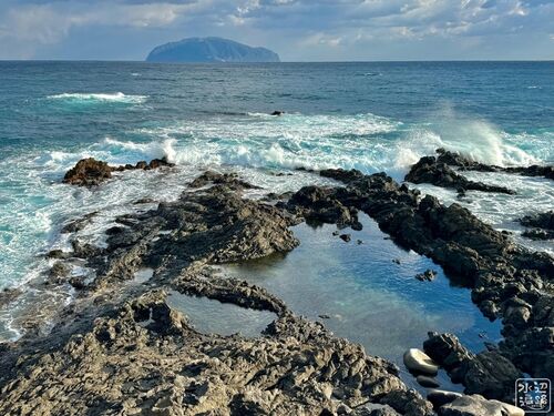 海の奥に見えるのは御蔵島。長太郎池という名は付いているが、実態は海岸のタイドプール 溶岩が作った離島のタイドプール 手軽にダイビング気分が味わえる天然の海岸プールで、夏場は子どもたちの水遊び場になる。 形態としてはタイドプールで、直接の成因は…