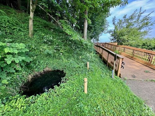 なんだろう、こんなところにも池が。 遊歩道、展望テラス、駐車場、トイレあり。 テラスと遊歩道 駐車場