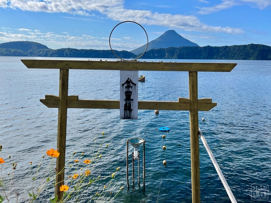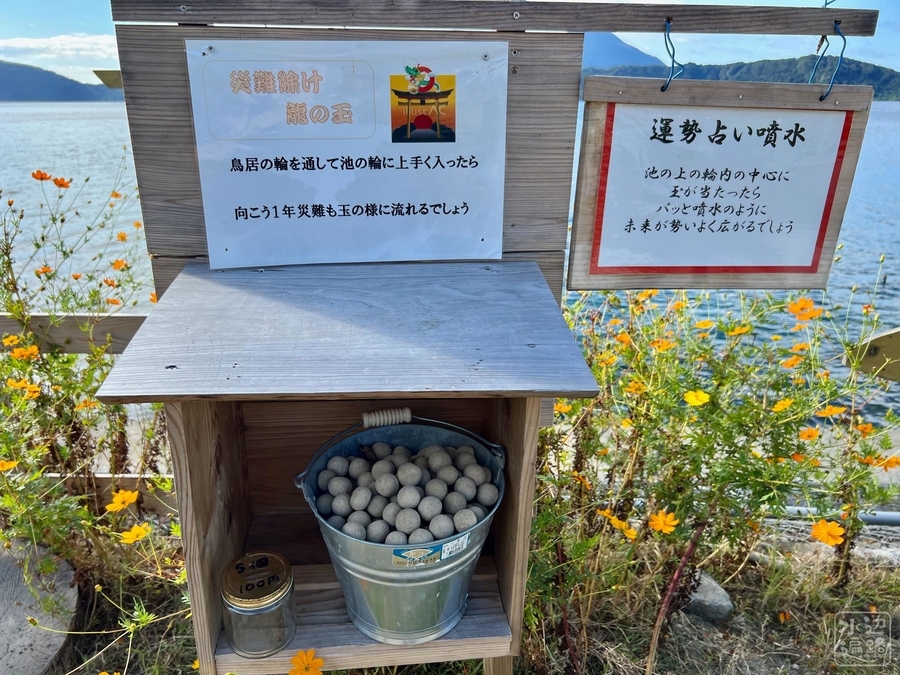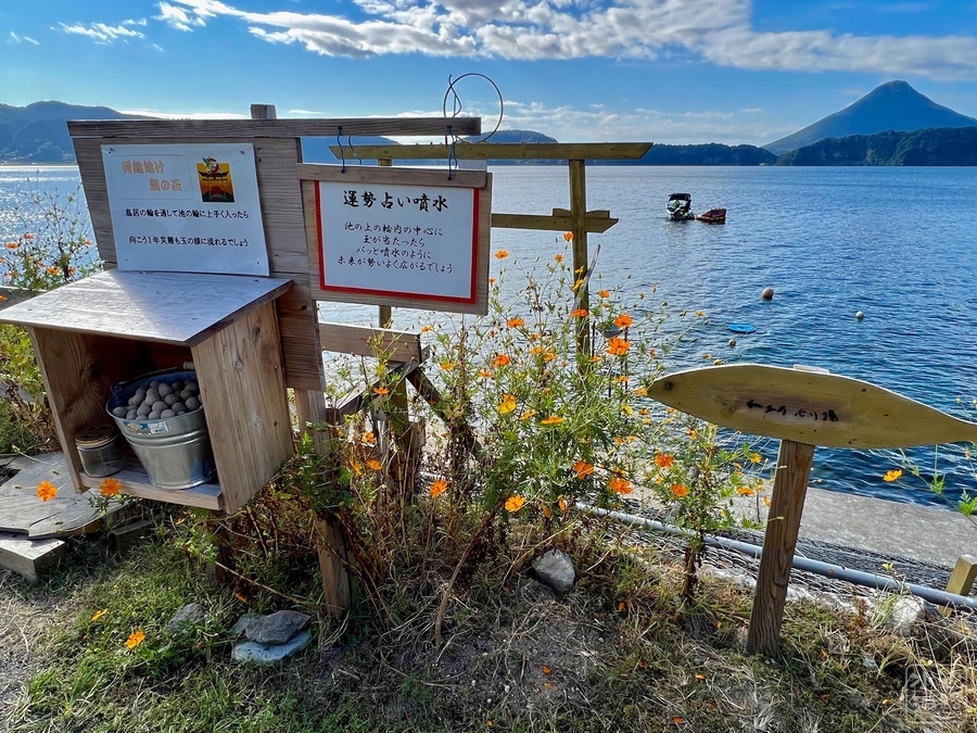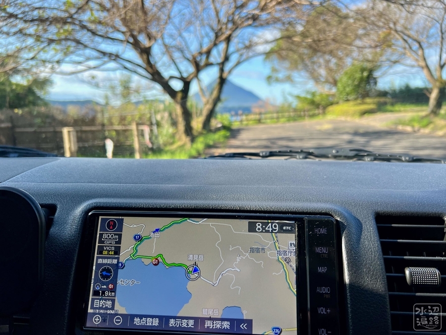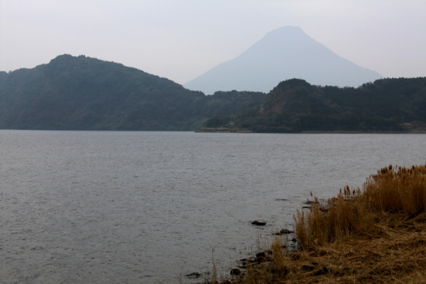 条件がよければ逆さ薩摩富士(開聞岳)が湖面に。開聞岳は百名山のひとつ。