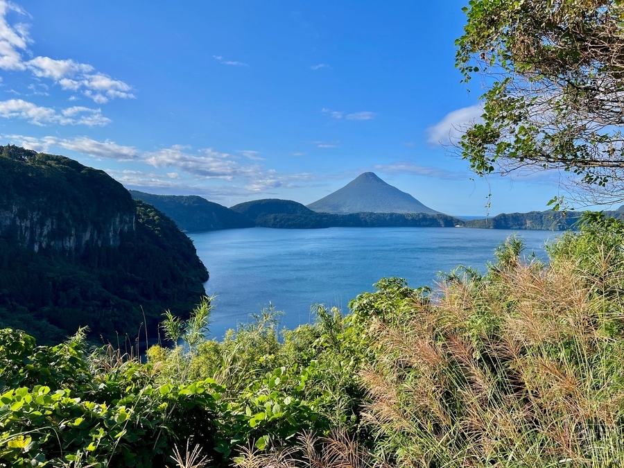 周囲16km、水深233mの九州最大のカルデラ湖。