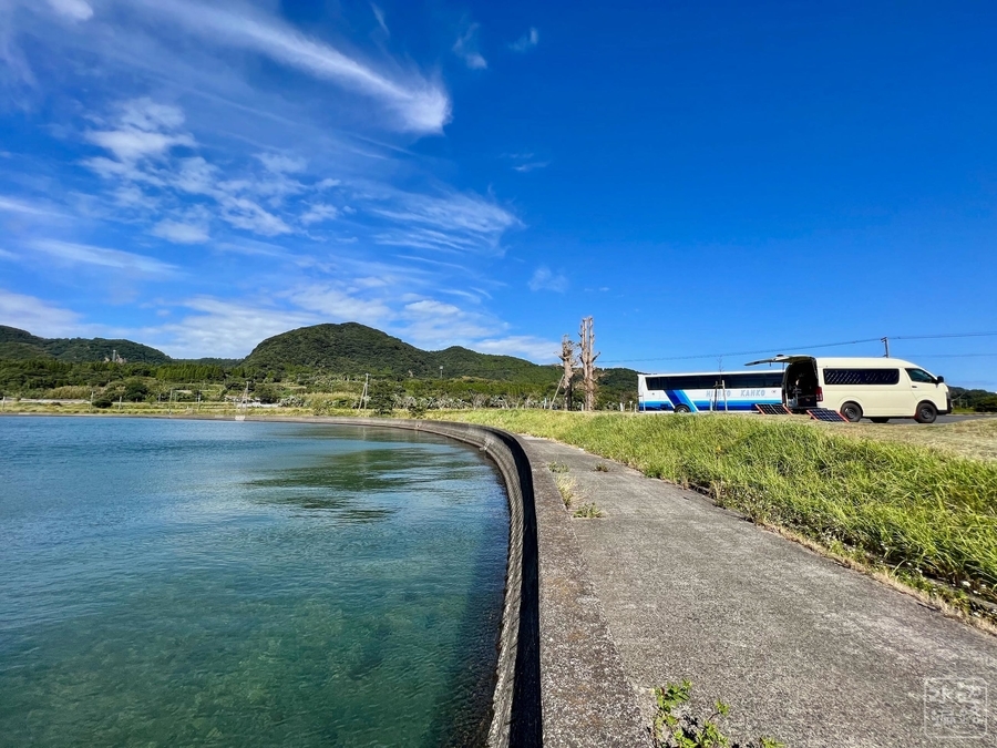 無料駐車場からカヤック出廷ポイントが目の前。階段もついた浜でラクラク。