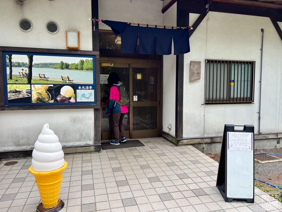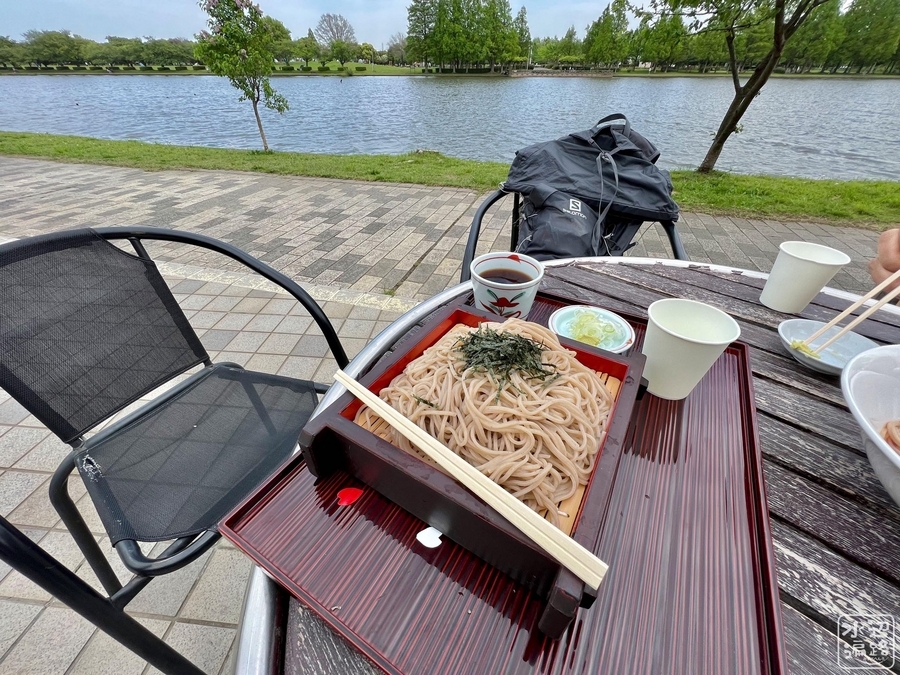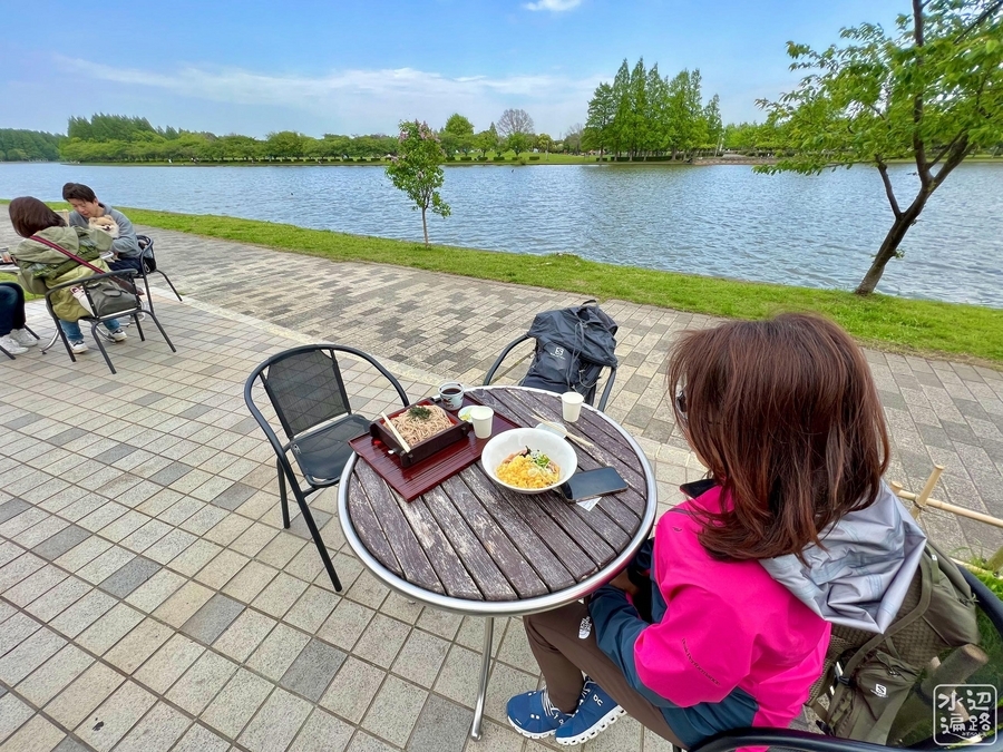 池を見ながら蕎麦などを食べられる。