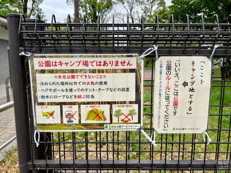 キャンプ場以外の園内ではキャンプ行為禁止。
