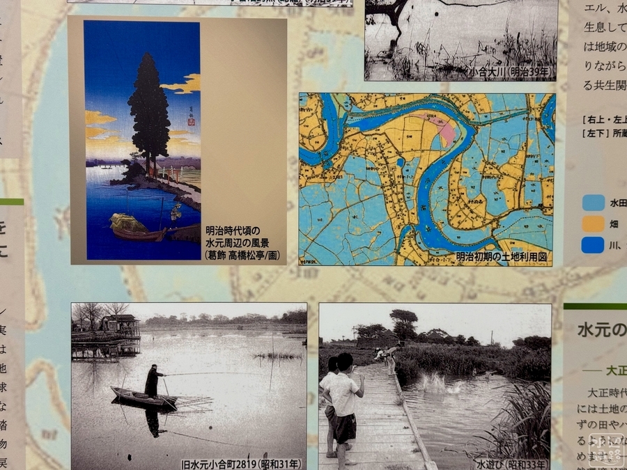 小合溜という名は小合村という村名が由来。写真は、水元公園水辺のいきもの館の展示パネルより。
