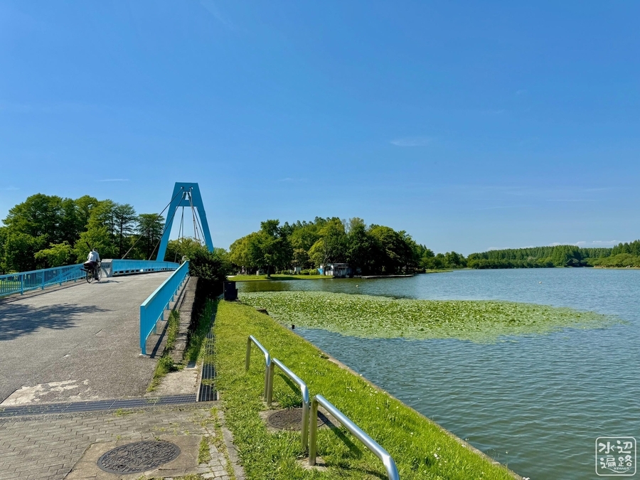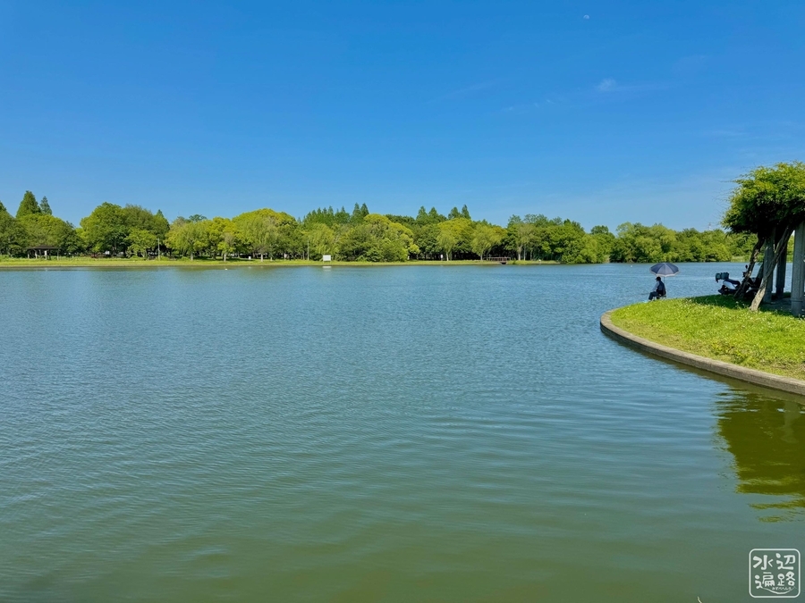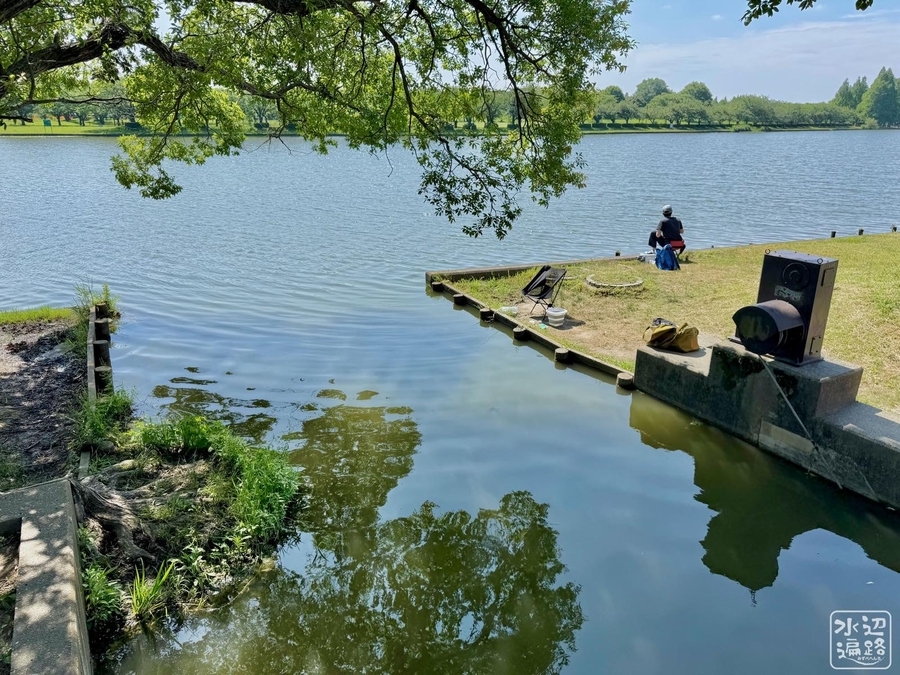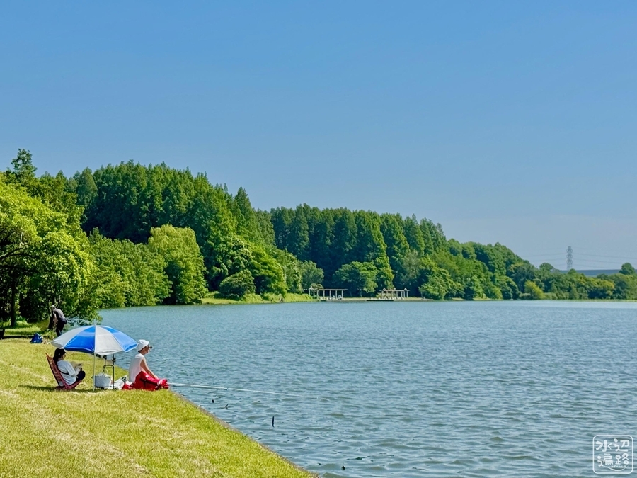 「釣仙郷」を掲げるだけあって、水面に近い岸辺は緑に覆われた自然護岸。どこからでも竿を出せる。ただしリール釣りは禁止。