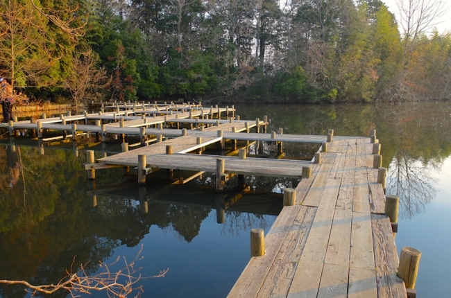 バサーにいちばん人気の場所が、迷路のような複雑な形状の釣りデッキ。この日もバサーがじっくり攻略している姿が見られた。