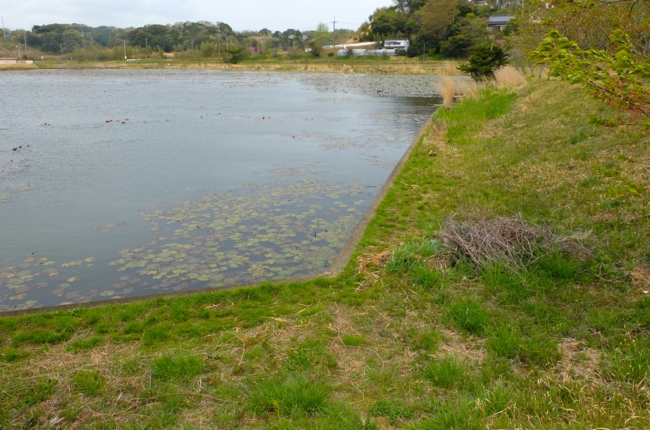2014-04-21 川尾池(茨城県潮来) 茨城県 かわおいけ。 ウォードがある開放的な池で、草地の岸辺はおかっぱりしやすい。 ブラックバス、へらぶな。 アクセス性もよく、駐車スペースあり。 近くの築地団地入口交差点にコンビニあり。 マークした場所が駐車スペース