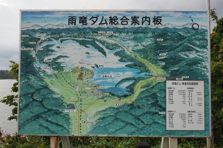 アースダムの雨竜土堰堤も重力コンクリート式の主堰堤(雨竜第一ダム)を東側からアシストしており、なだらかな地形を生かし二つの堰体で広大な貯水池を堰いているかっこうだ。他にも副堤があるという情報もある。