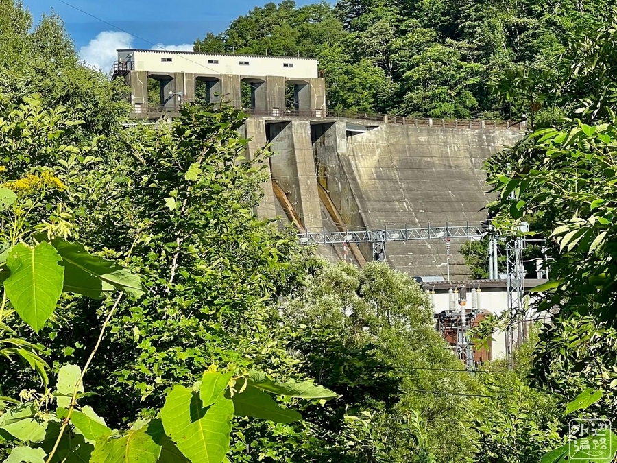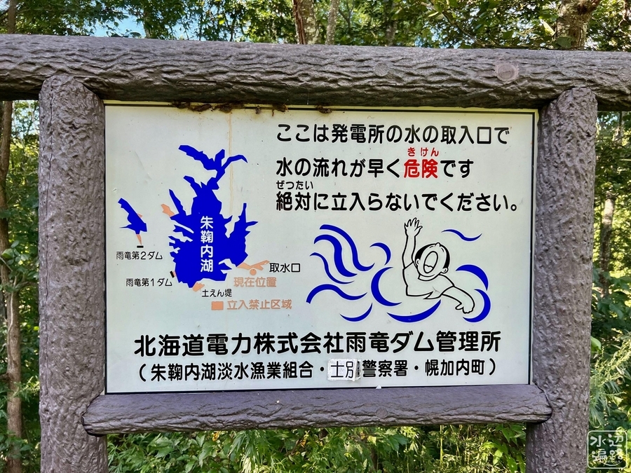 堰堤からはかなり離れた場所に取水口がある。これは北海道電力の発電専用の取水口のようである。かんがい用の取水口は別にあるのだろうか。
