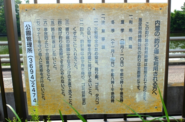 釣り場の利用時間が設定されており、投げ釣りは禁止。