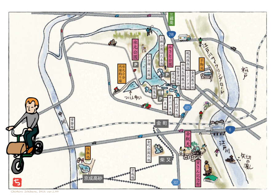 水元公園の入口に立っている標柱のような看板には「釣り仙境」の黒い文字が目を引く。