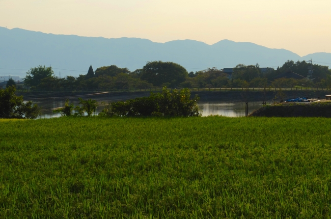 周辺は大和盆地野池群。起源は平安時代にさかのぼる歴史ある方形の皿池が数え切れないほどある。