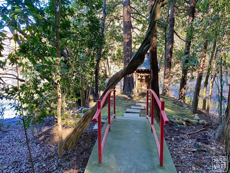 神々廻市民の森という魅力的な名前をもつ谷戸地形の里山。その中に厳島神社を出島に戴いた弁天池が鎮座する。