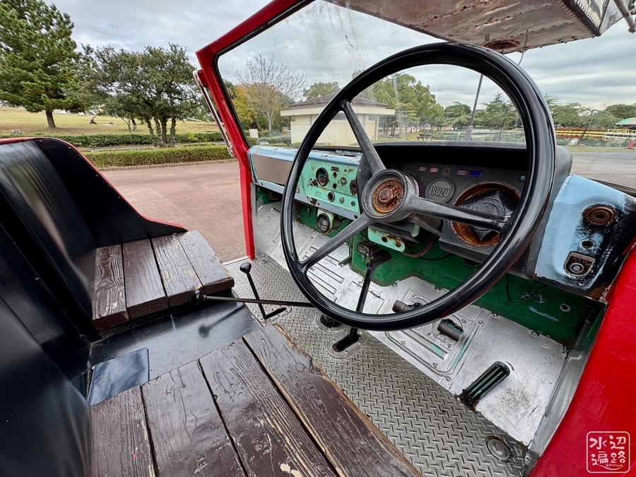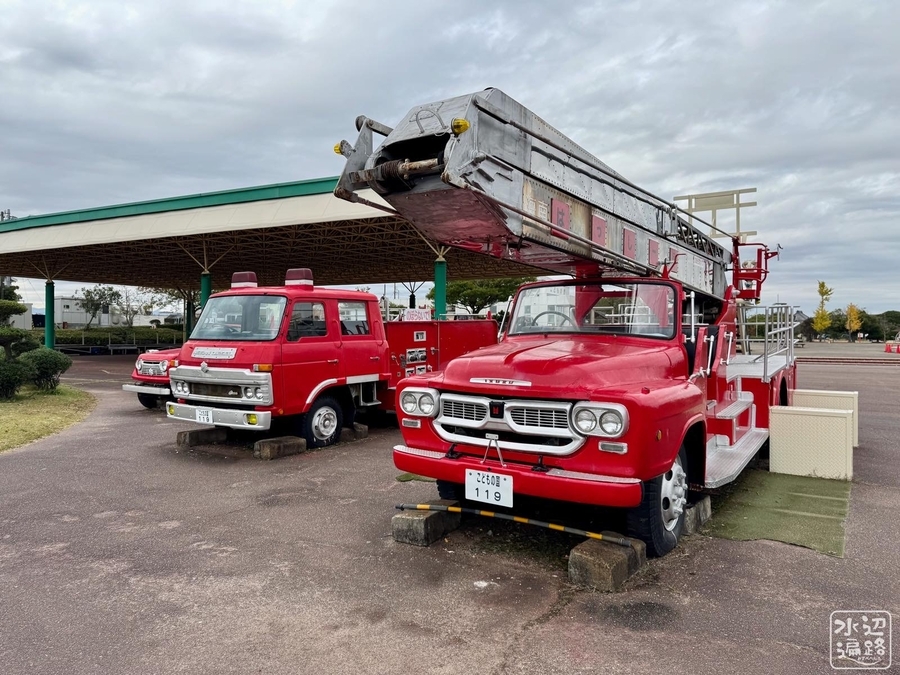 古い消防車で遊べる