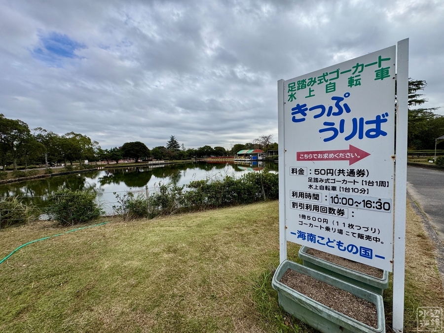 水上自転車(といってもいわゆるペダルボート)で遊べる変形ドーナツ型の池のほか、夏期はプールが営業となる。