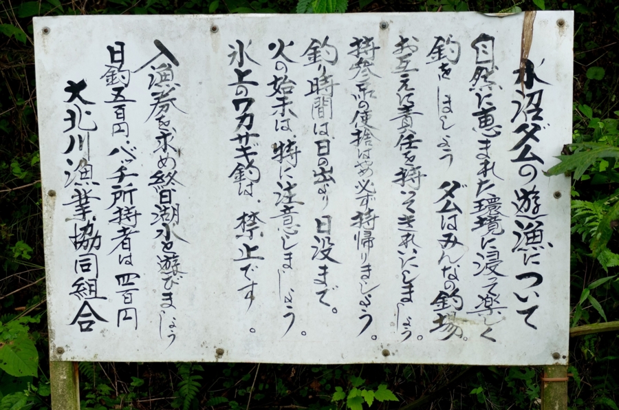 茨城県最北部の渓谷部に、風景に溶けこむように古いダムがあった。地図で見ると大きくV字に屈曲した湖だが、湖畔に立ってみると湖が屈曲しているというより、湖に小さな山がせり出しているように見える。その山裾は草地となって湖面と接しており、ところどころで釣り人が竿を出している。透明な水の匂いが、ああ、釣りをしたいと思わせる。県最古の多目的ダムの水沼ダムである。
