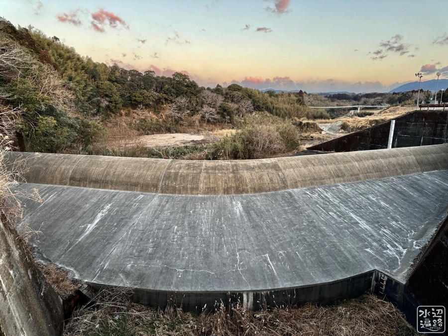 農業用のダムとはいえ貯水ではなく洪水対策が目的という防災ダムのため、平常時は水位を落とす仕様になっている。