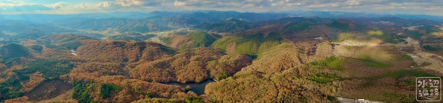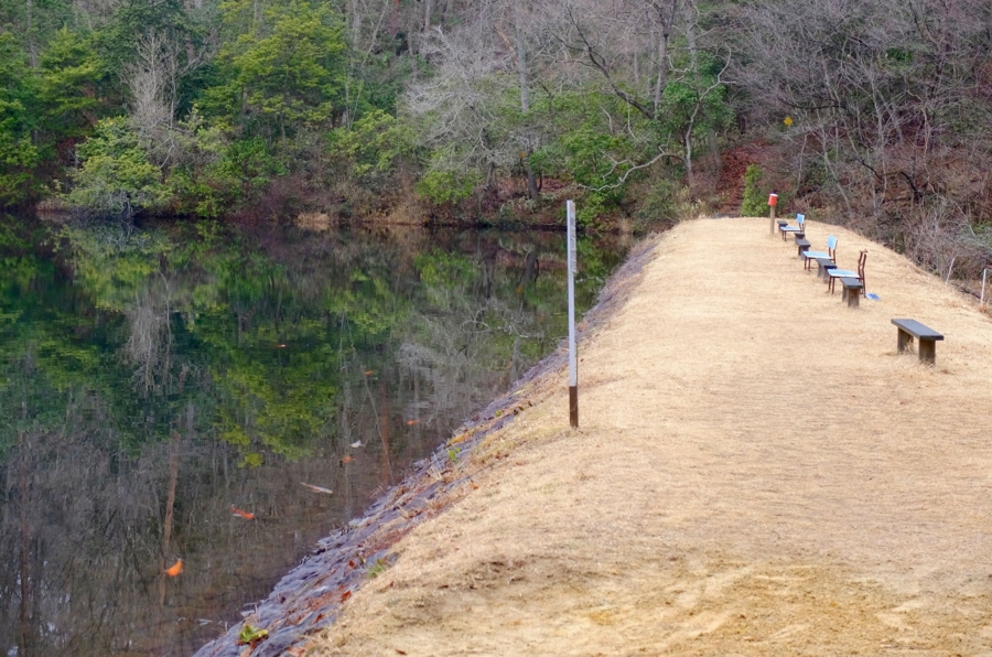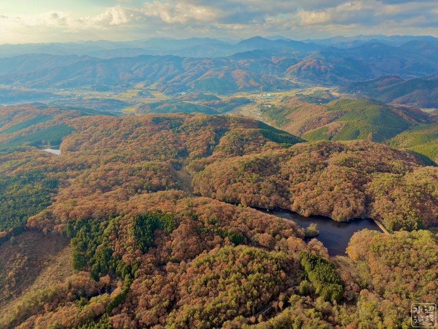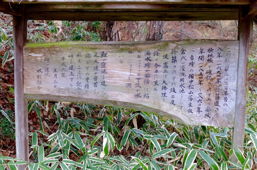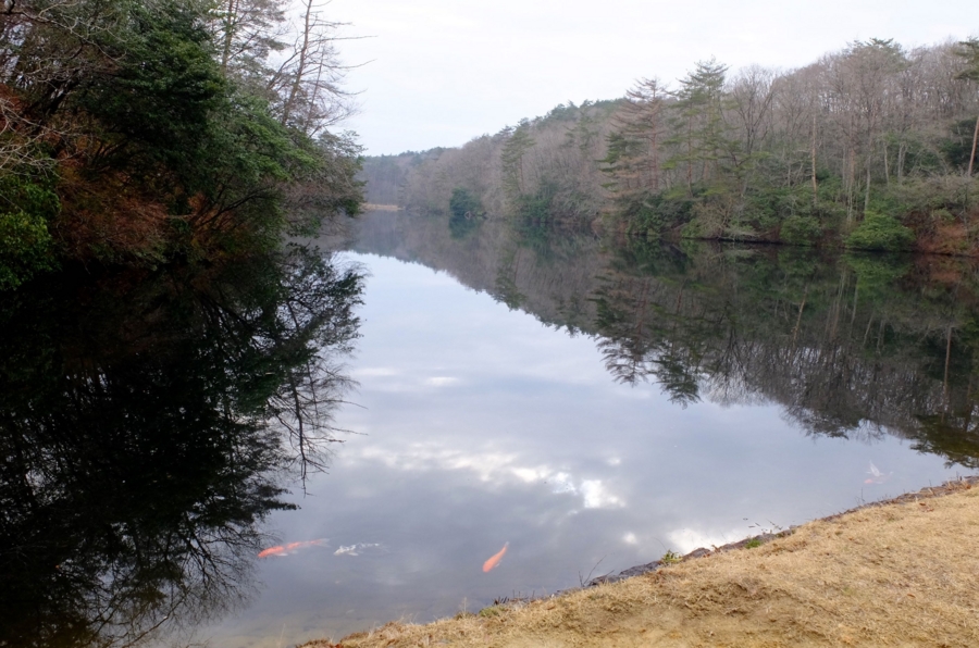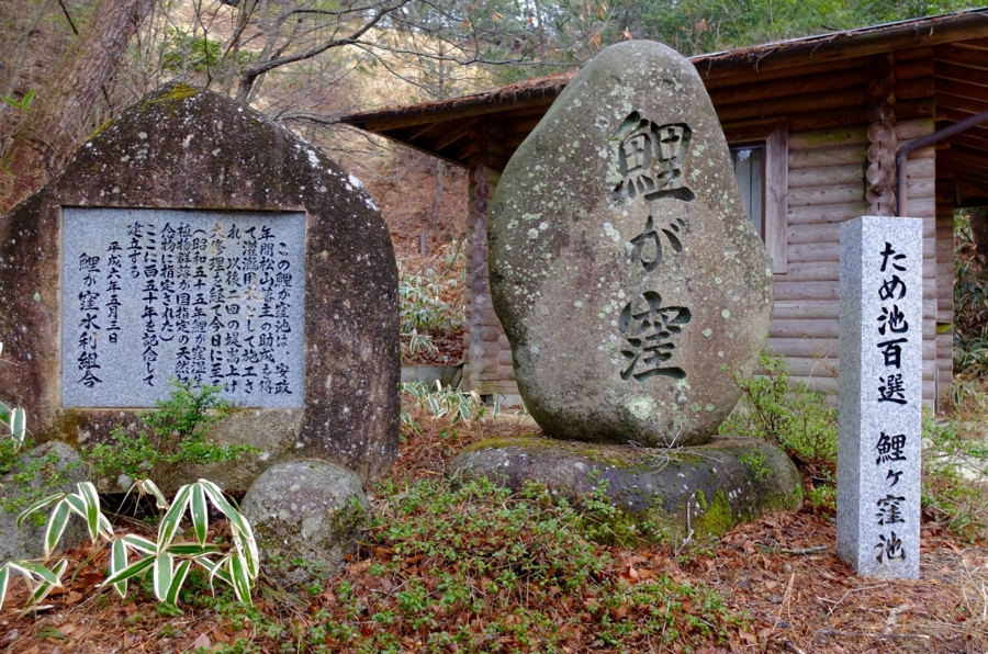 鯉ヶ窪池は標高550mの山間に畝のように広がる丘陵地に穿たれた江戸時代築造の溜め池。