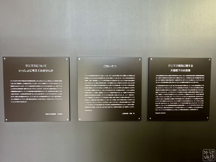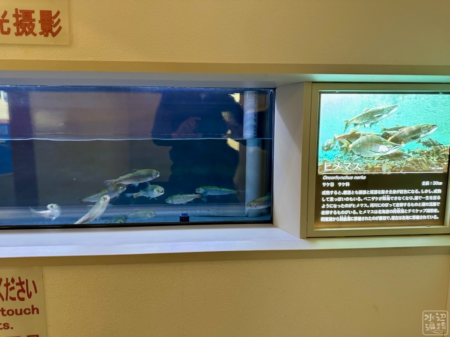 ヒメマスは現生のベニザケが陸封された魚だが、クニマスは今より海水温が低かった氷期に生きた古代ベニザケの陸封型ではないかと、下のパネルでは解説されている。
