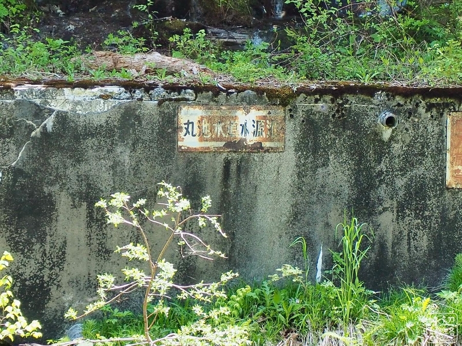 静かな木陰にクルマを停めて、水音を聞きながら歩いていたら「丸池水道水源池」と判読できる看板を発見!!