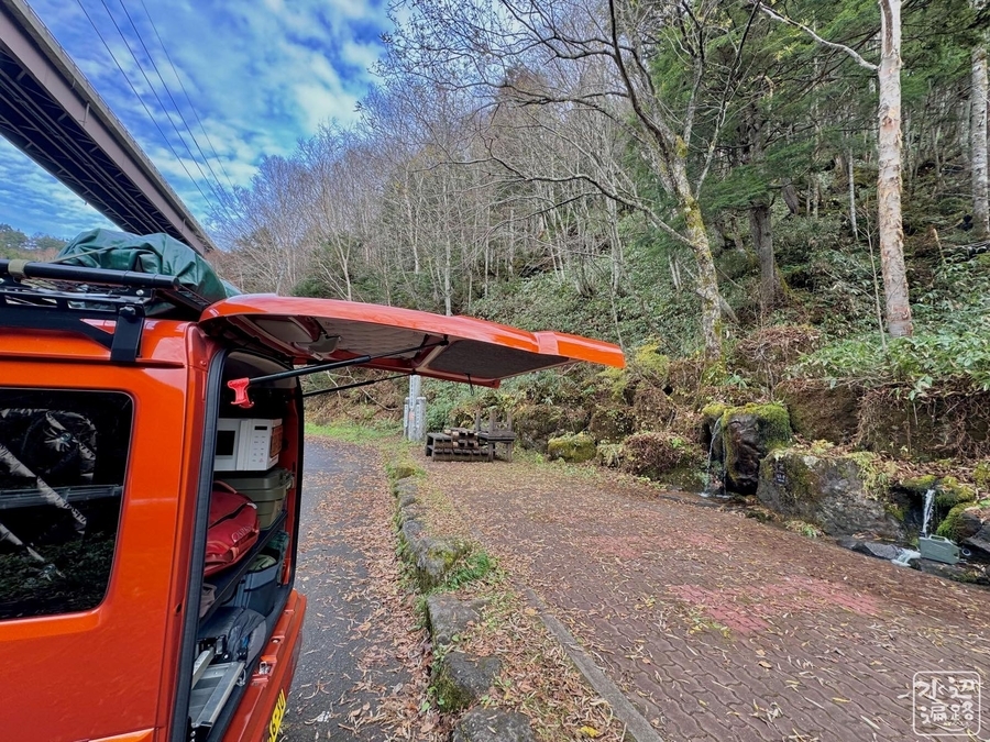 清水名水公園は水くみができるよう整備されている。アクセス路も二車線で楽々。