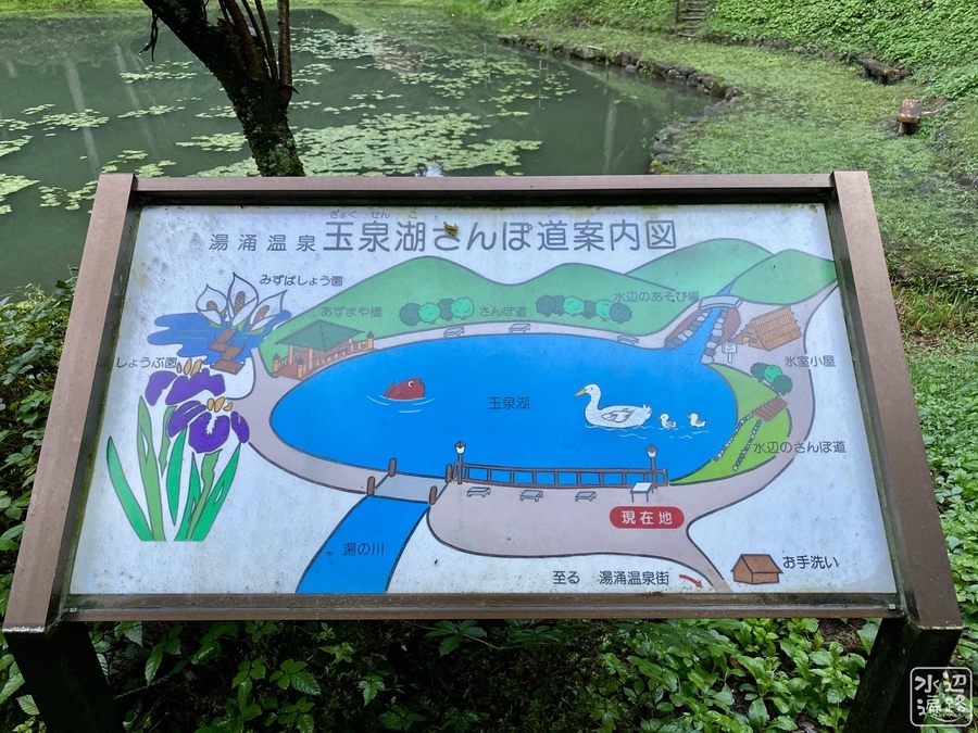 多くの文人墨客を集めた温泉街の景観要素にもなっており、「玉泉湖」というネーミングは何とも文学的。池畔には氷室や散策路もあり、桃源郷のような空気をまとっている。