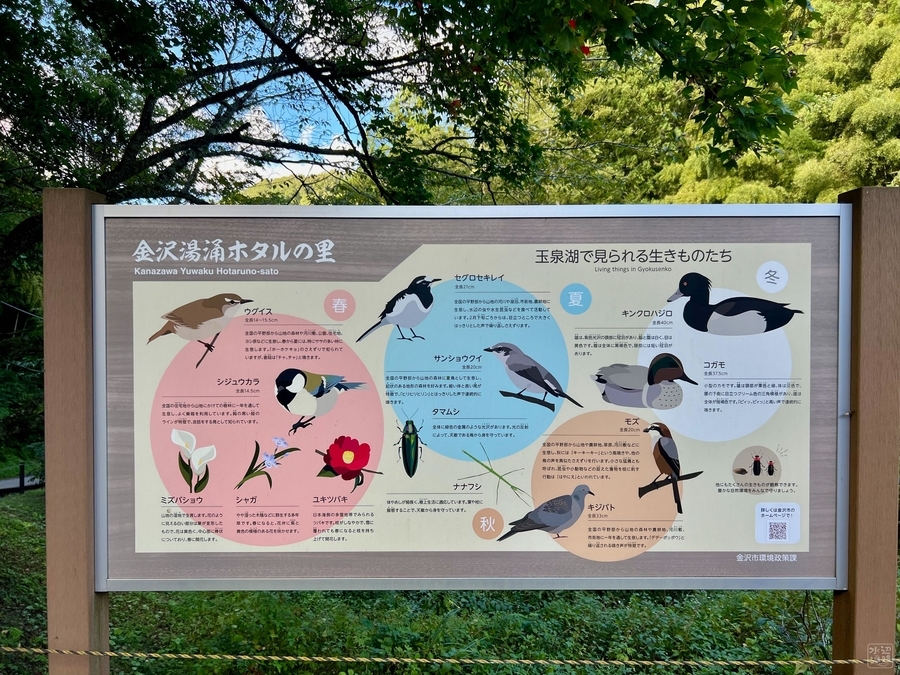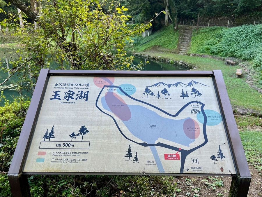 開湯1300年の歴史をもつ湯涌温泉を見守るように、温泉街を見おろす立地にある人造湖。とはいっても湖のスペックは満たしておらず、規模としては小ぶりの溜め池。